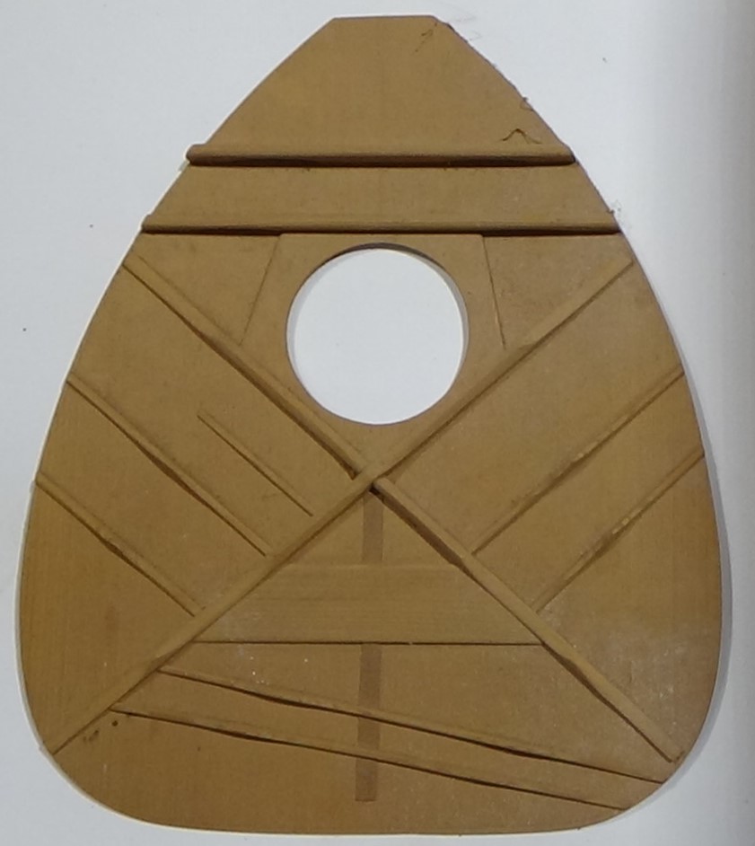 La photo montre le dos d’un capuchon de luth crétois, fabriqué par Kontaxakis Kostas.
